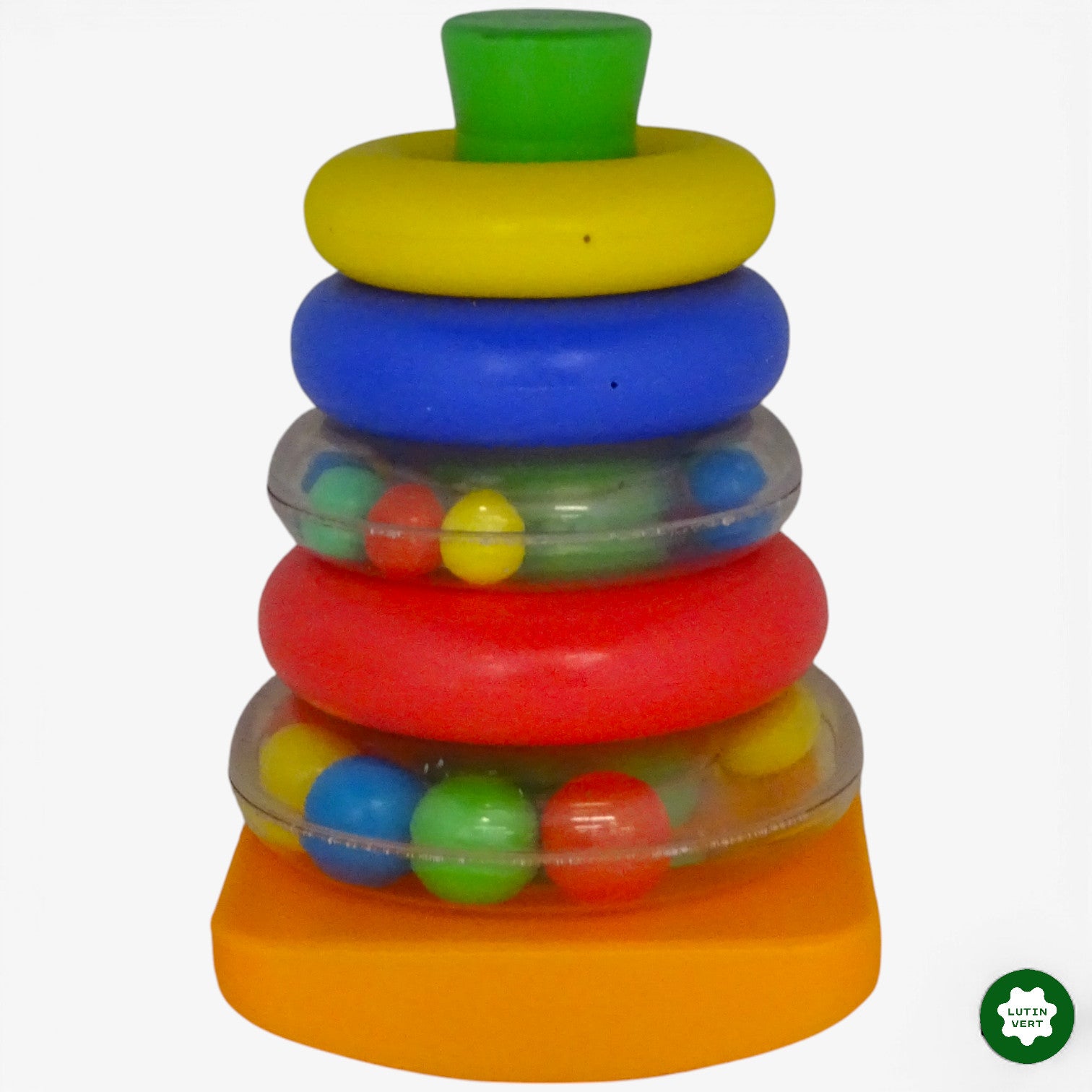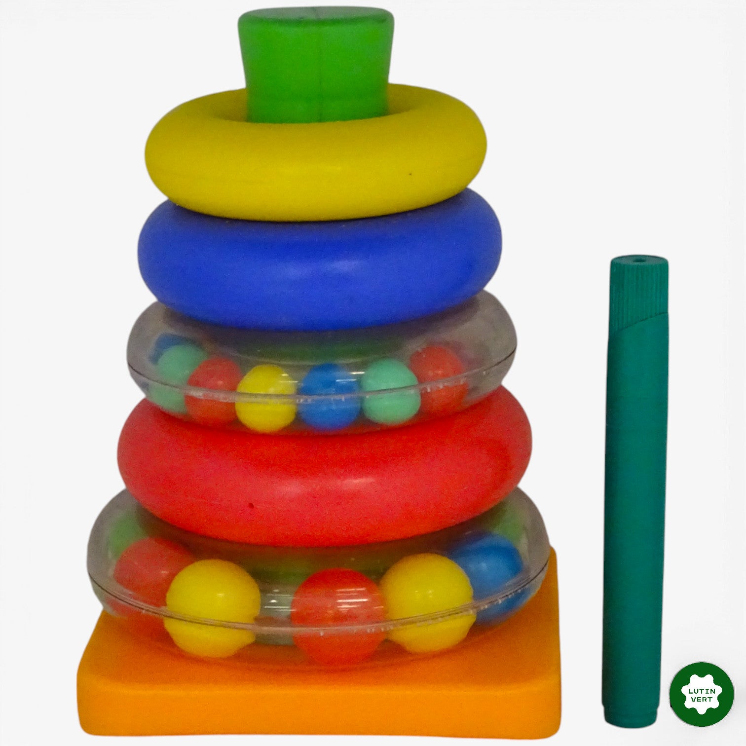 Les tours empilables travaillent l’adresse et la préemption. Etant en plastique, celle-ci est facile d’entretien et les anneaux hochets attireront l’attention de vos petits.