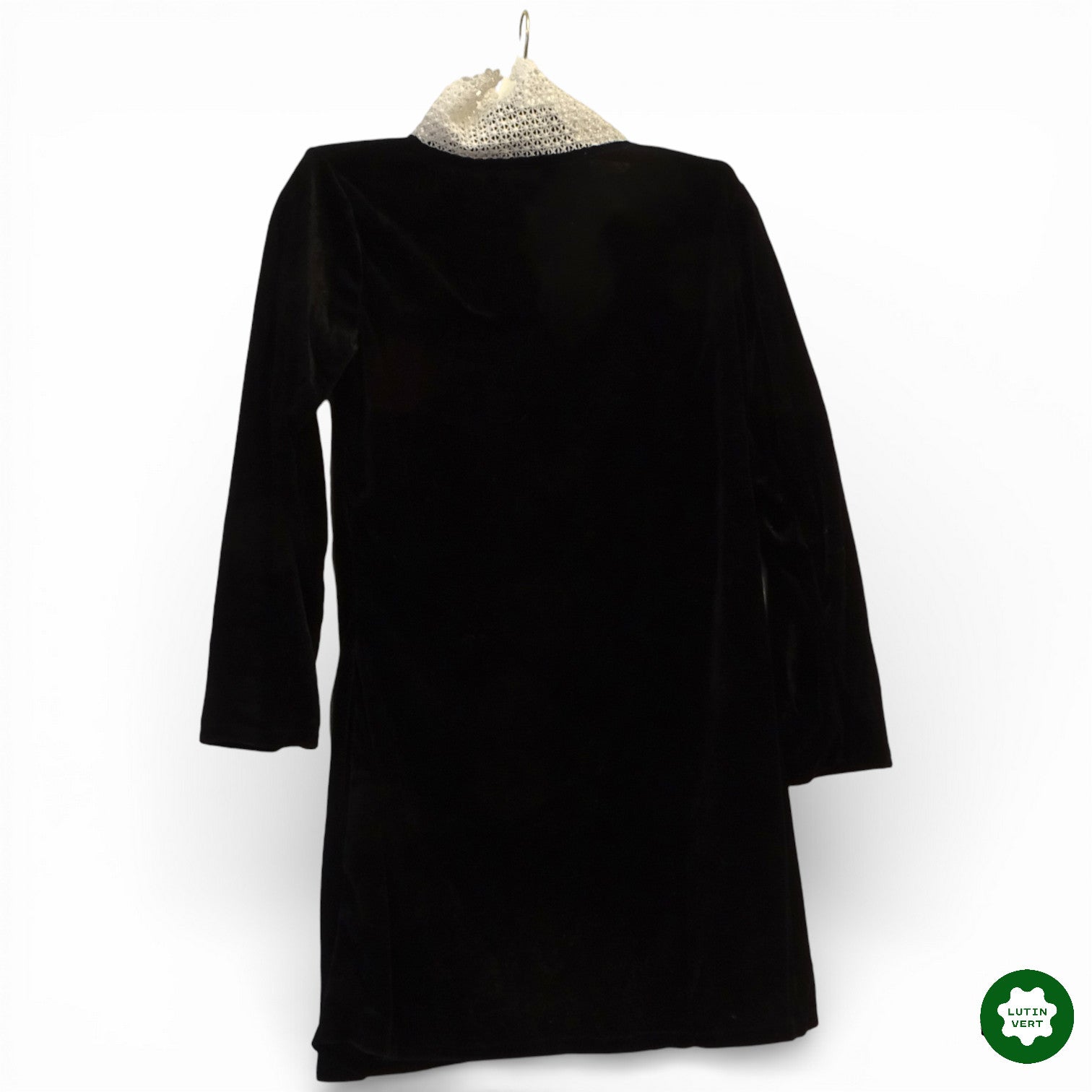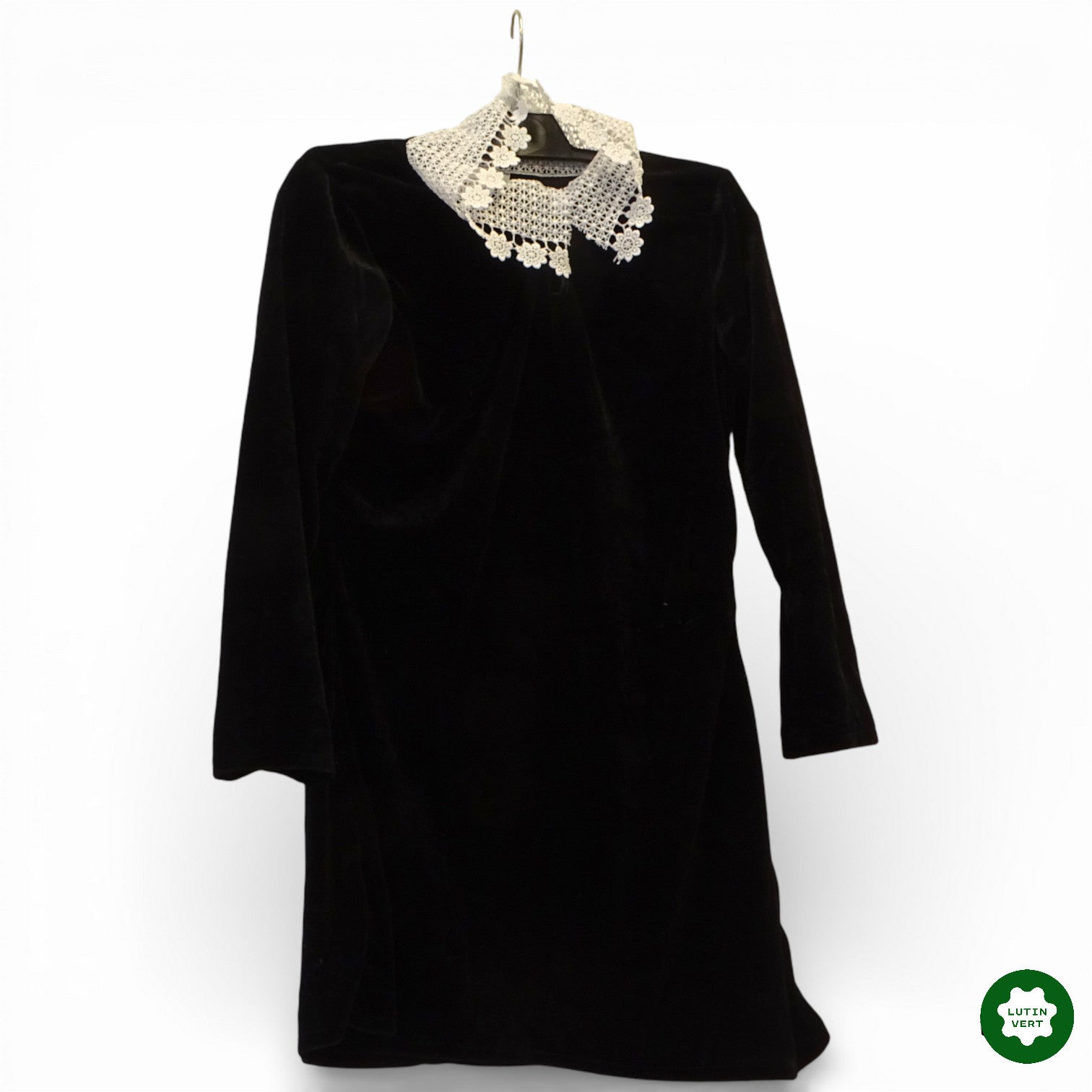 Voilà un super déguisement pour ressembler à Wednesday / Mercredi, de la famille Adams. La robe a un effet brillant et un col rond élégant imitant la dentelle et les habits de l’époque victorienne. Taille : 11 à 14 ans