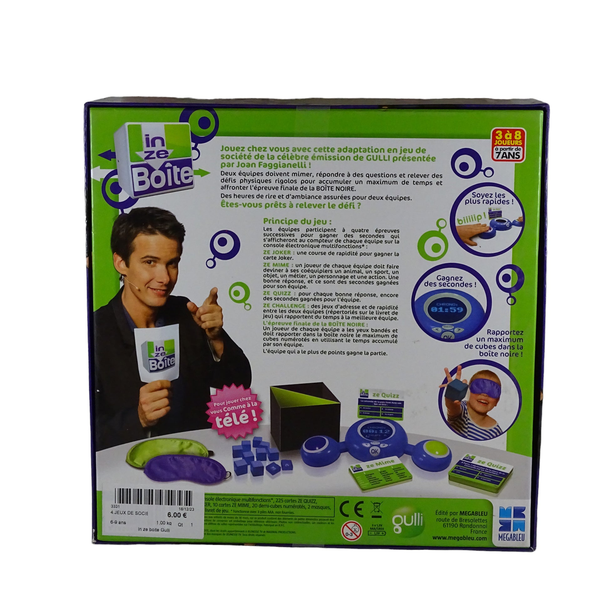 Deux équipes doivent mimer, répondre à des questions et relever des défis physiques rigolos pour accumuler un maximum de temps et affronter l’épreuve finale de la BOITE NOIRE.