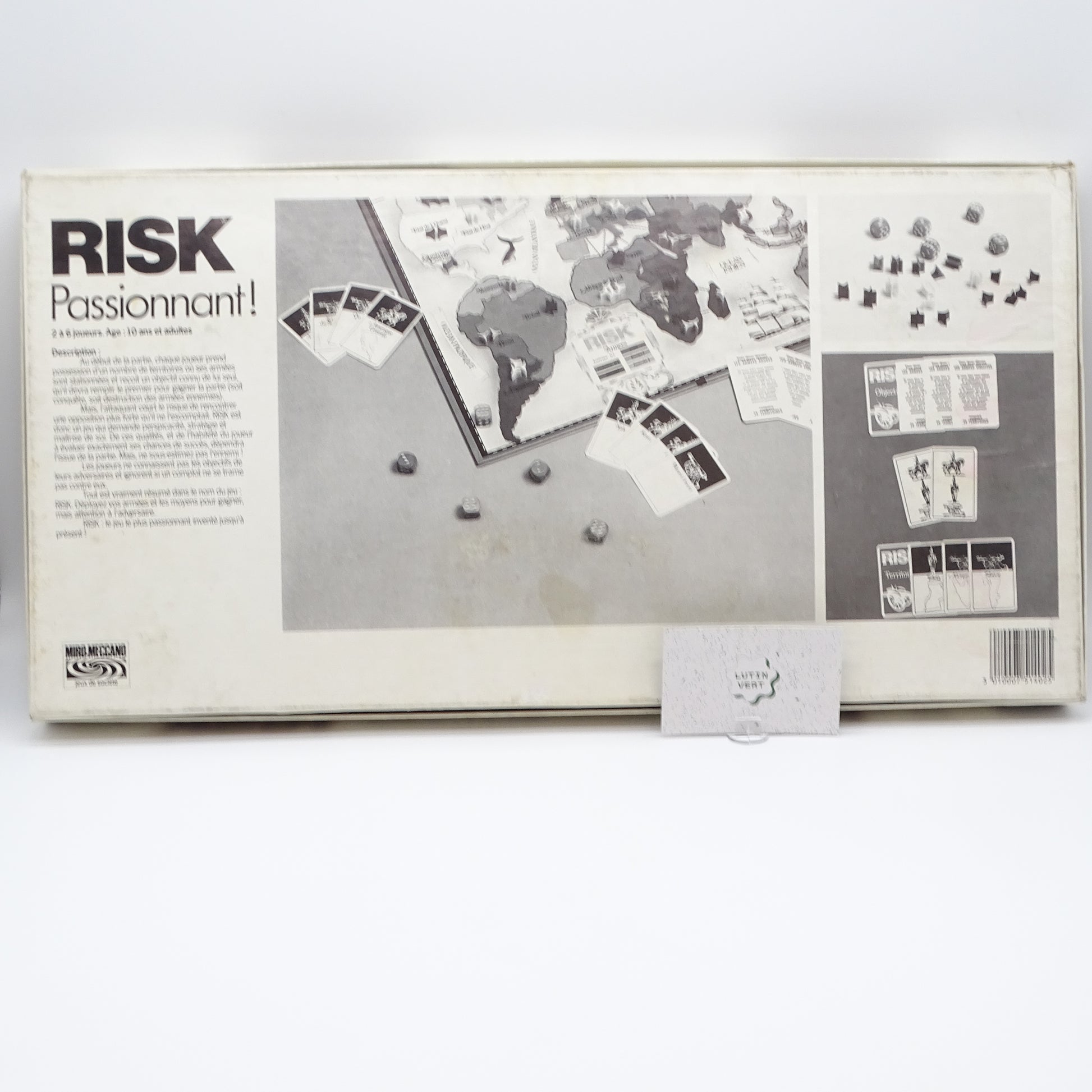 Passionnés de stratégie, offrez vous le célèbre jeu de stratégie Risk, édition vintage des années 70/80. Grand classique des jeux de stratégie, Risk a pour but de conquérir le monde en déployant ses armées et en élaborant des tactiques pour vaincre ses adversaires. Stratégie, diplomatie et un peu de hasard avec les dés seront au rendez-vous. Les fans de jeux de stratégie Les collectionneurs vintage Les soirées jeux entre amis Contenu : 1 Plateau monde / 6 Armées de différentes couleurs / Cartes territoires et objectifs / 5 Dés De 2 à 6 joueurs À partir de 10 ans Parties longues (1 à plusieurs heures)