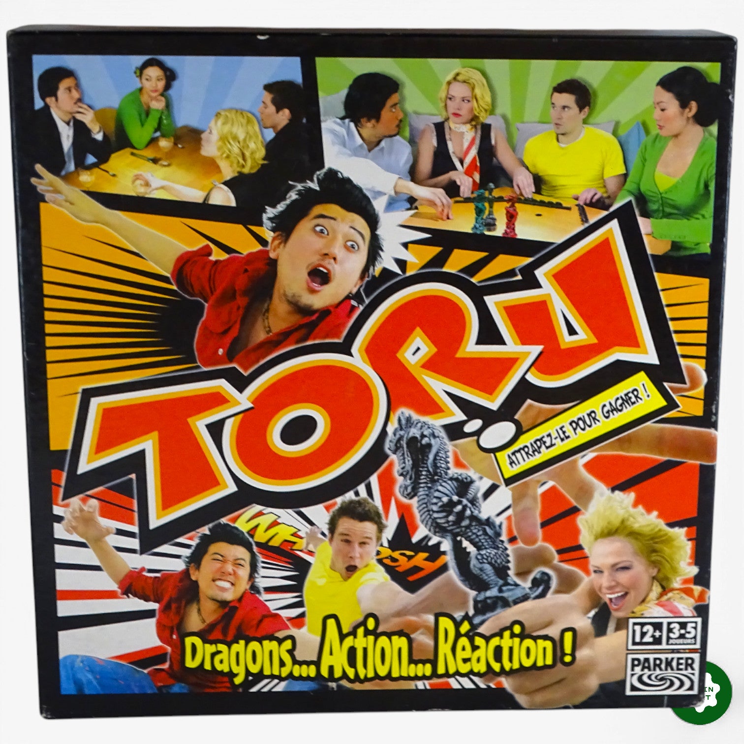 Dragons...Action...Réaction ! Faites passer les jetons pour compléter une série, puis attrapez un dragon. Attention ! Il y a un dragon de moins que le nombre de joueurs… Soyez vigilants et ne repartez pas les mains vides ! A partir de 12 ans pour 3 à 5 joueurs.