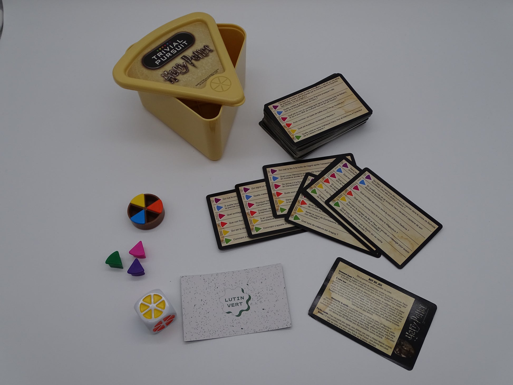 Le célèbre jeu de quiz en version voyage, sur le thème de la série de films Harry Potter ! Dumbledore, Gryffondor ou les Weasley ont-ils encore des secrets pour vous ? Cette version ne nécessite pas de plateau pour jouer : un dé et les cartes suffisent… et les connaissances pour rassembler les camemberts en premier ! Contenu : 600 cartes / dé / camembert / règle du jeu À partir de 8 ans