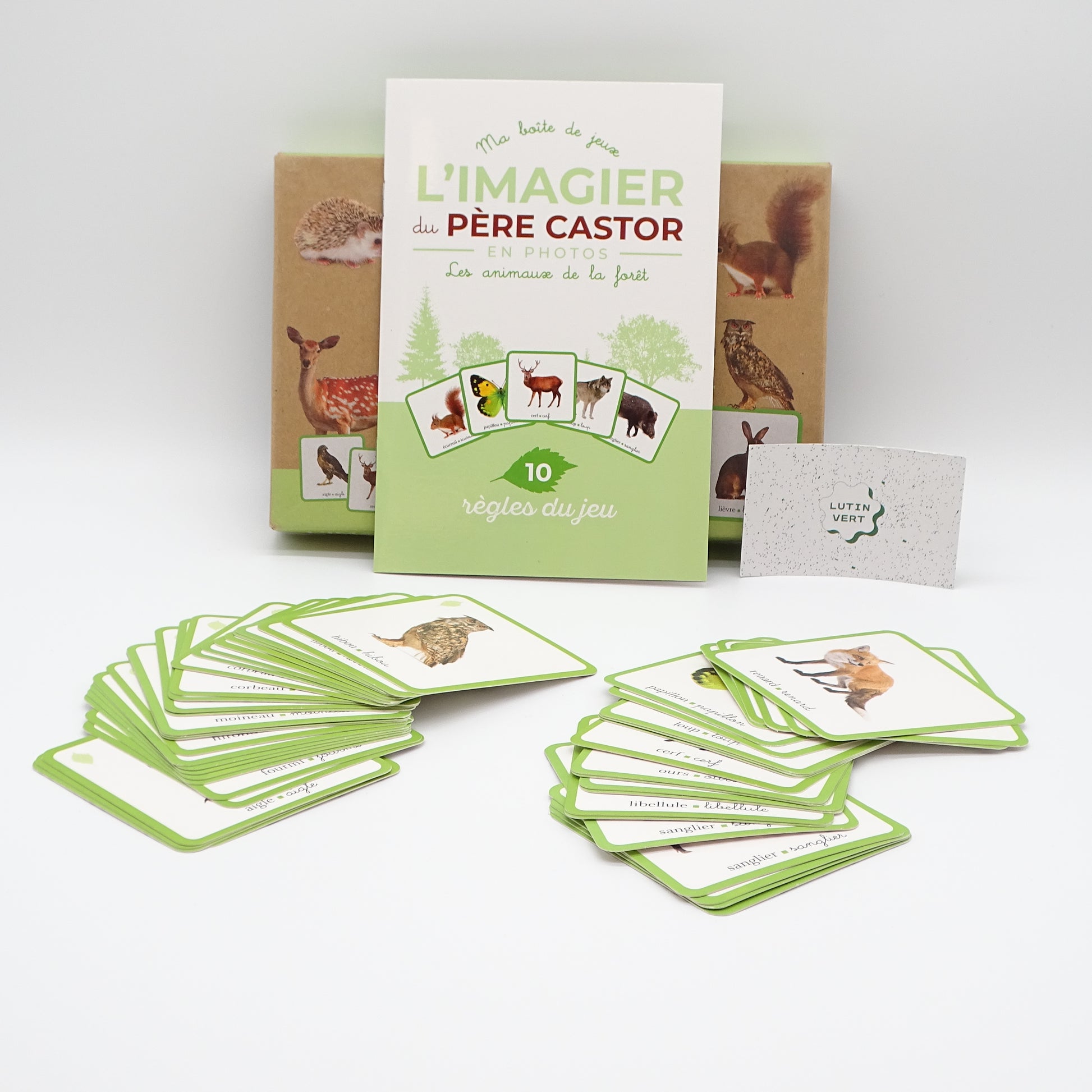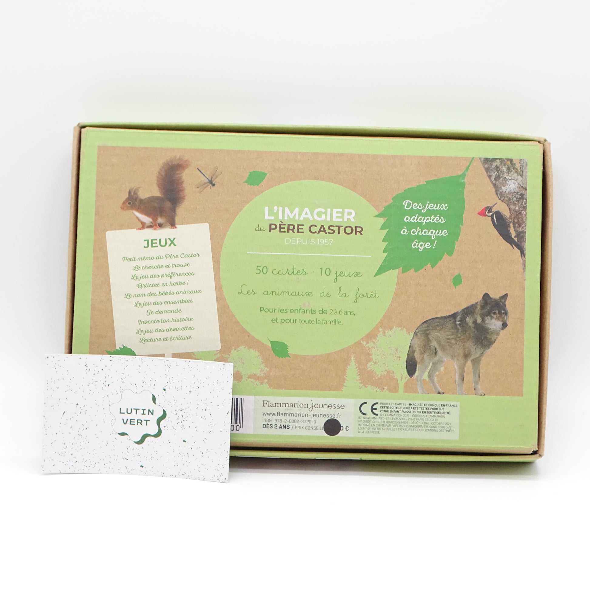 Une boîte de jeu avec de très belles photos des animaux de la forêt. 50 cartes, 10 jeux adaptés à chaque âge : petit mémo du Père Castor, le cherche et trouve, le jeu des préférences, artistes en herbe, le nom des bébés animaux, le jeu des ensembles, je demande, invente ton histoire, le jeu des devinettes, lecture et écriture et un livret de règles de jeux. Pour les enfants de 2 à 6 ans, mais aussi pour toute la famille !