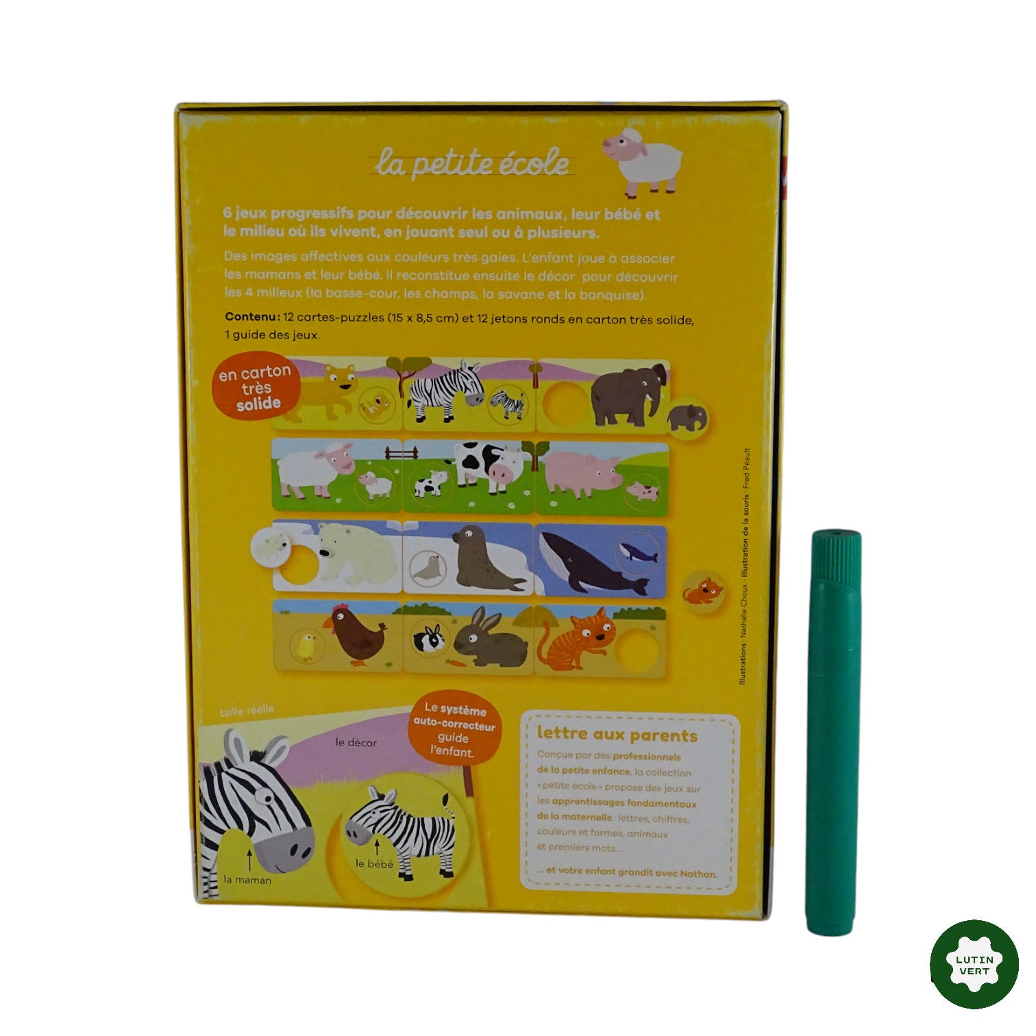 6 jeux progressifs pour découvrir les animaux, leur bébé et le milieu où ils vivent, en jouant seul ou à plusieurs.