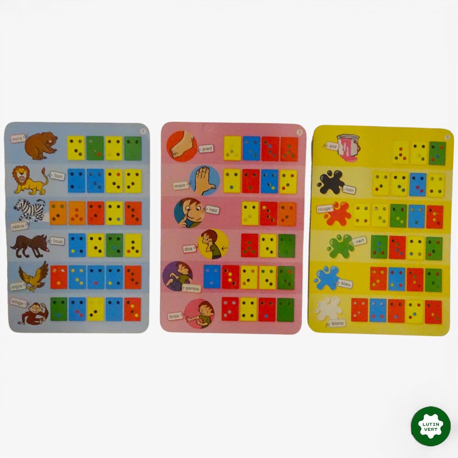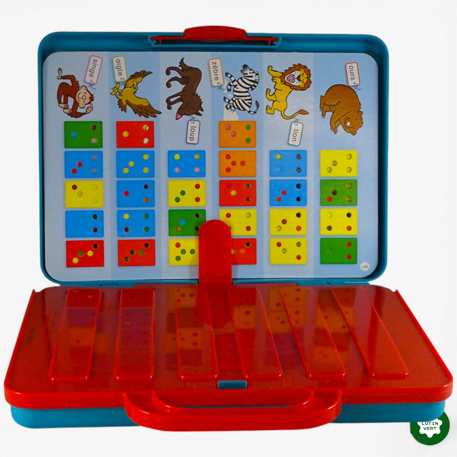 Avec cette petite mallette transportable, l’enfant pourra apprendre à lire en s’amusant à peu près n’importe où ! Il pourra ainsi composer 90 mots différents en complétant les planches à l’aide des jetons lettres. Une seule lettre peut s’imbriquer : c’est la bonne ! Contenu de la mallette : 15 planches illustrées (avec 5 mots), 90 jetons lettres. Une façon ludique qui permet à l’enfant de jouer de façon autonome grâce à l’autocorrection. Dès 5 ans.