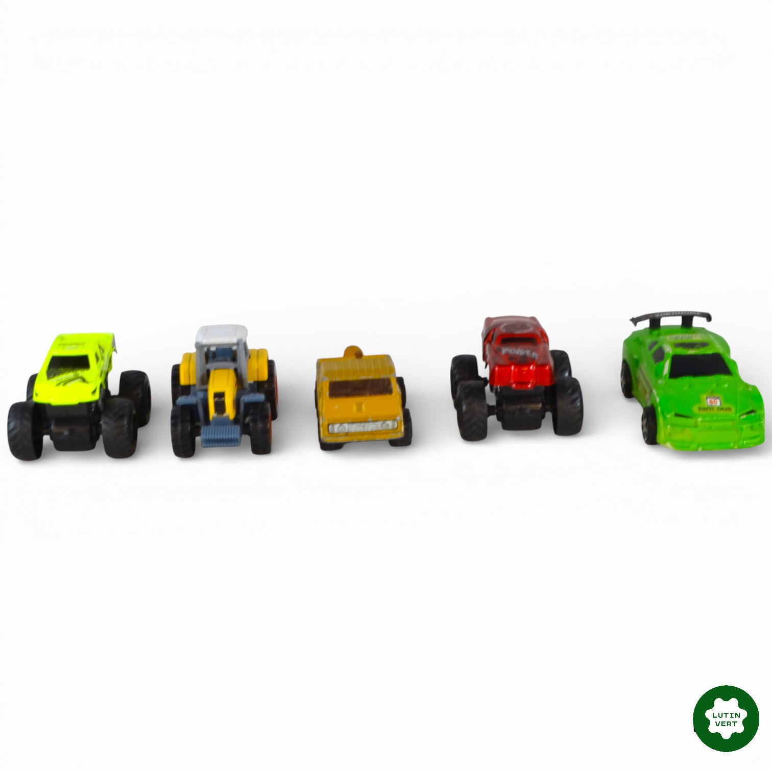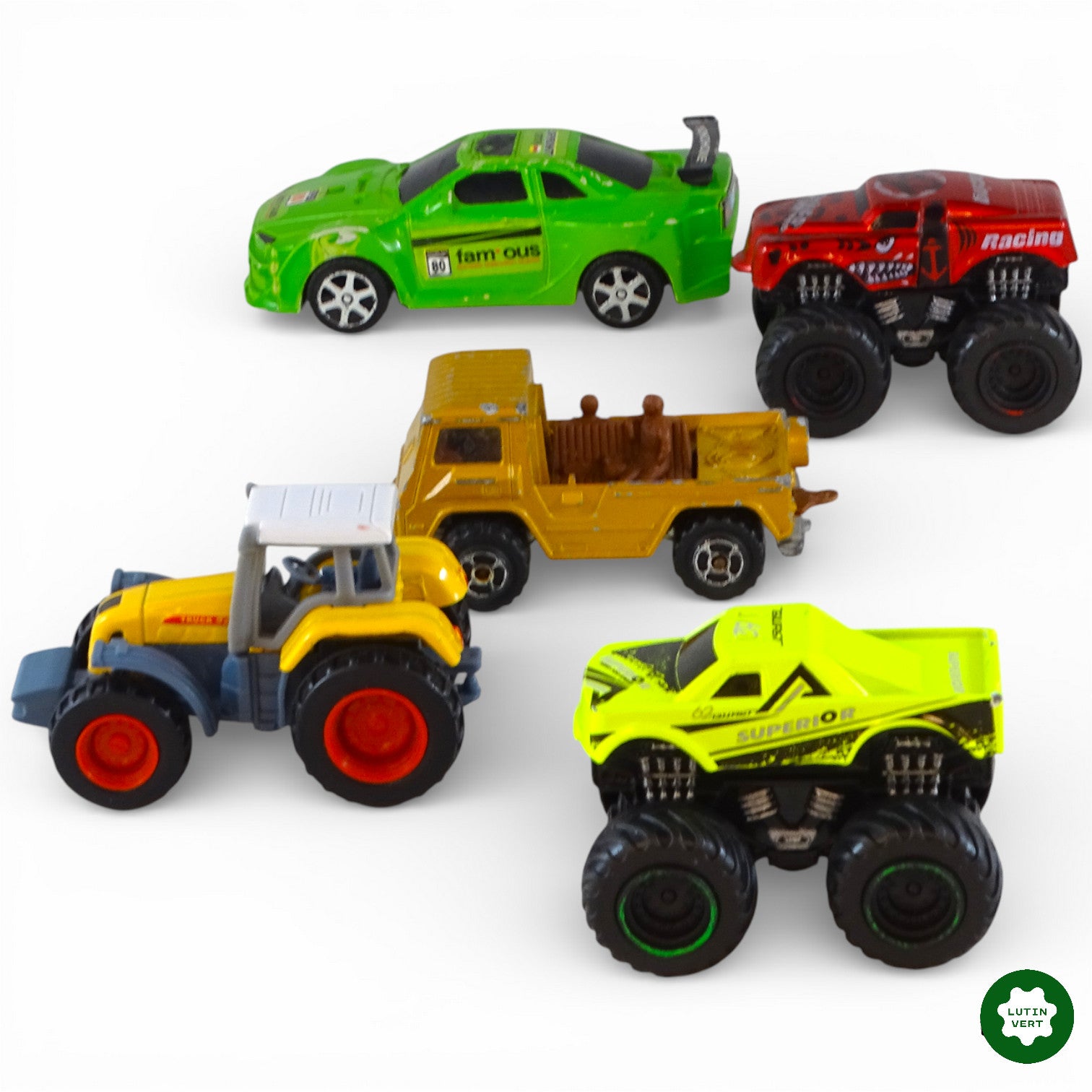Comprenant 1 tracteur, 1 voiture de sport, 1 voiture de course, 1 voiture Latino gangsta et 1 van.