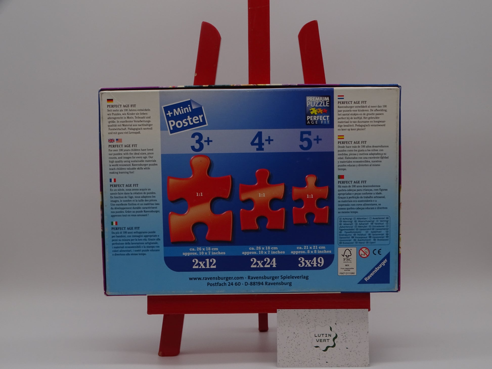 Boîte de 3 Puzzles Raiponce. Ces 3 Puzzles joliment illustrés feront plonger votre enfant dans les aventures de Raiponce et ses amis. Avec leurs magnifiques décors fleuris et leurs couleurs acidulées, ces pièces sont conçues pour s’adapter parfaitement à la préhension des petites mains dès 5 ans. 5 ans et + 3 Puzzles de 49 pièces chacun / 3 images d’illustration. 21X21 cm environ