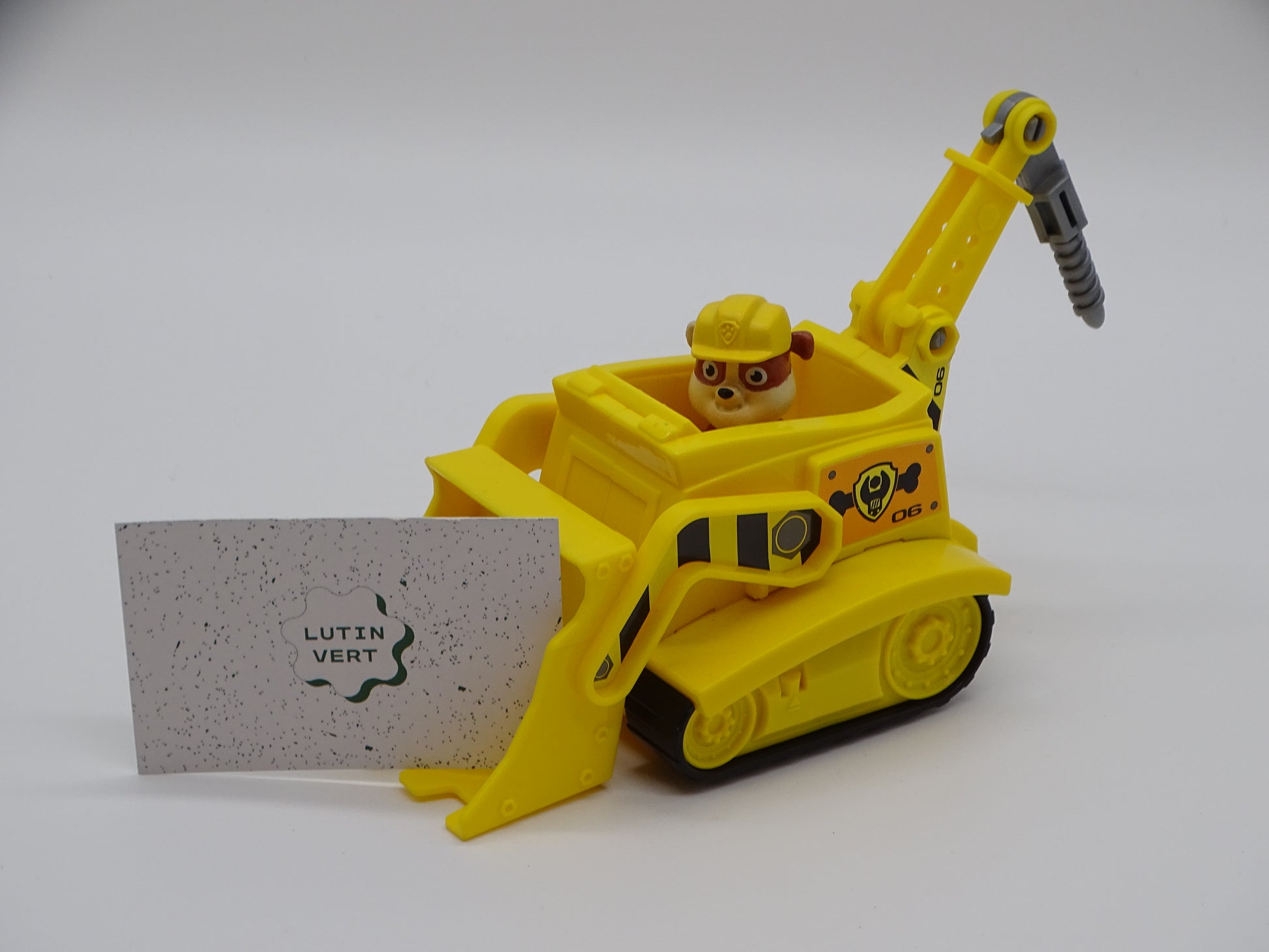 Les autocollants sont un peu usés et le chien Ruben n’est tout à fait à la bonne taille, mais c’est le personnage qui convient avec cet engin.