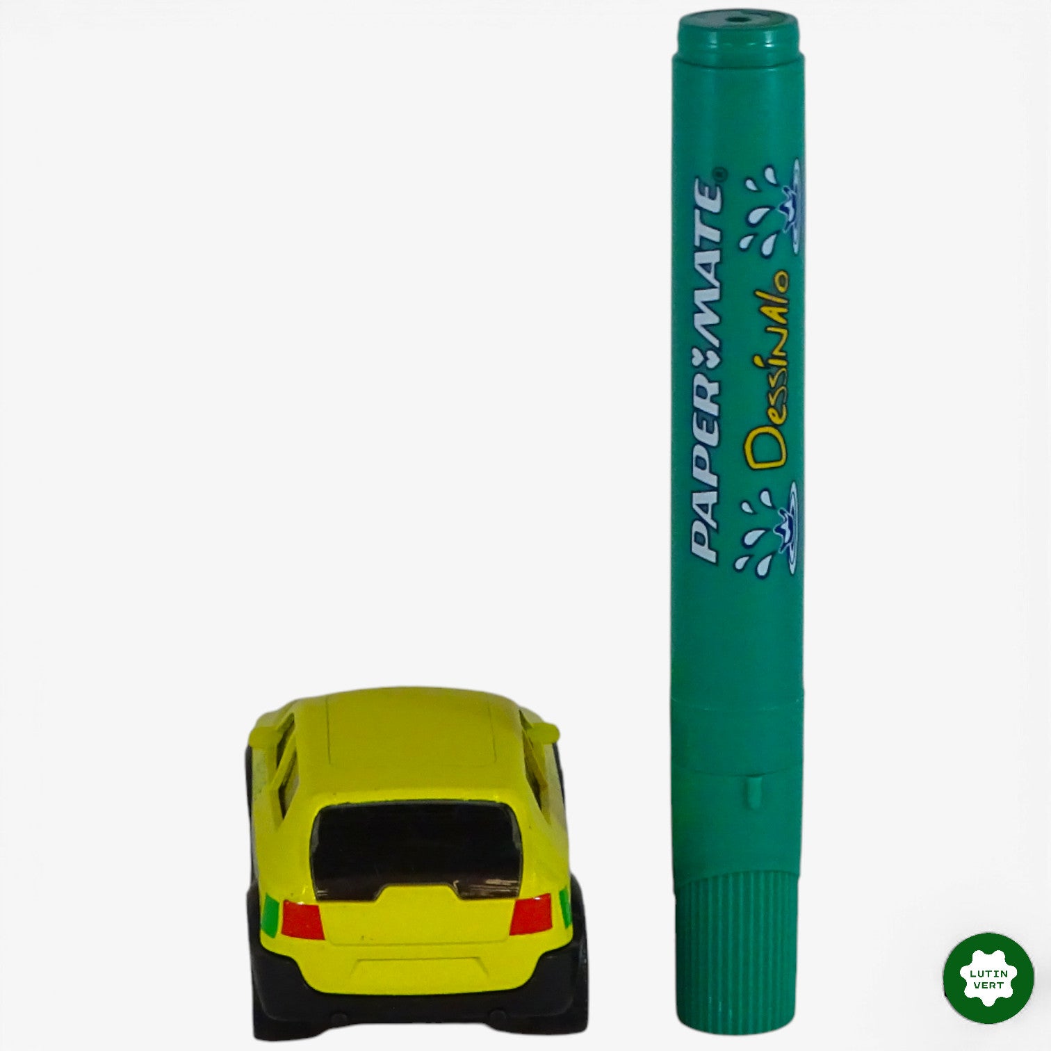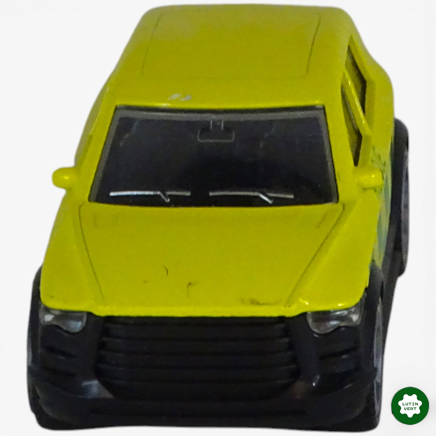 Carrosserie jaune en métal et châssis noir en plastique. Longueur : 10 cm.
